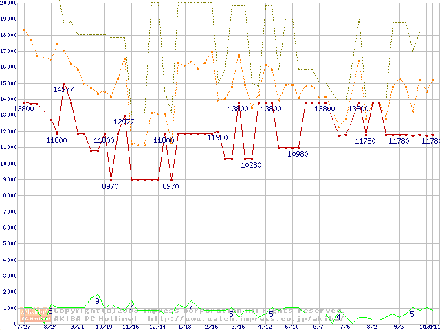PC133 SDRAM DIMM CasLatency=3 ECC対応 Registeredタイプの最安値推移