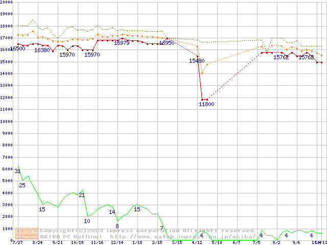 Pentium 4 1.60A GHz リテールパッケージの価格推移