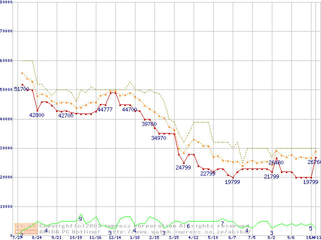 PC2100(DDR266) DDR SDRAM DIMM(CL 2.5)の最安値推移