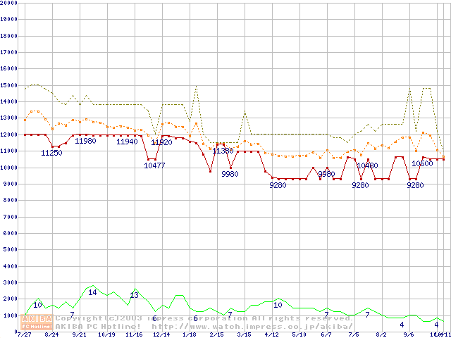 PC800-40 DRDRAM RIMM ECC対応の最安値推移