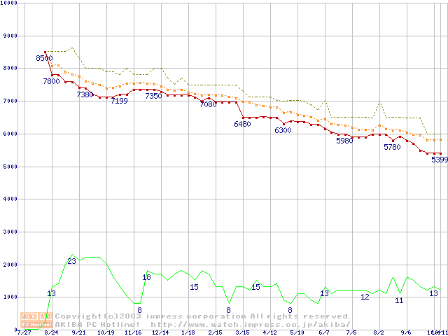 HDD主要製品の最安値推移