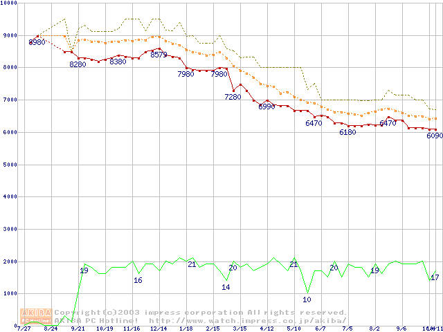 Fireball 3 (5400rpm,UltraATA/133,2MB,FDB)の最安値推移
