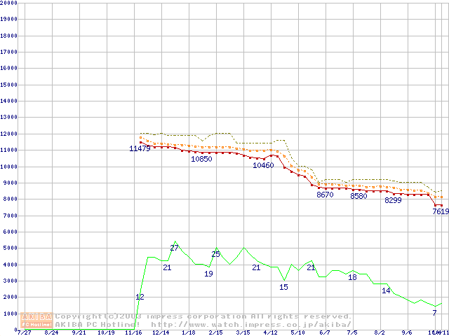 Socket 478 (micro-PGA,FSB 400MHz,L2 128KB,Northwood)の最安値推移