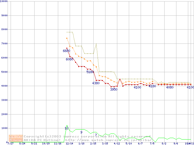 Socket 370 (PGA,FSB 100MHz,L2 64KB,Ezra)の最安値推移
