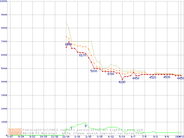 Socket 370 (PGA,FSB 100MHz,L2 64KB,Ezra)の最安値推移