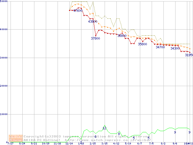 Xeon 2.66GHz(FSB533) リテールパッケージの価格推移