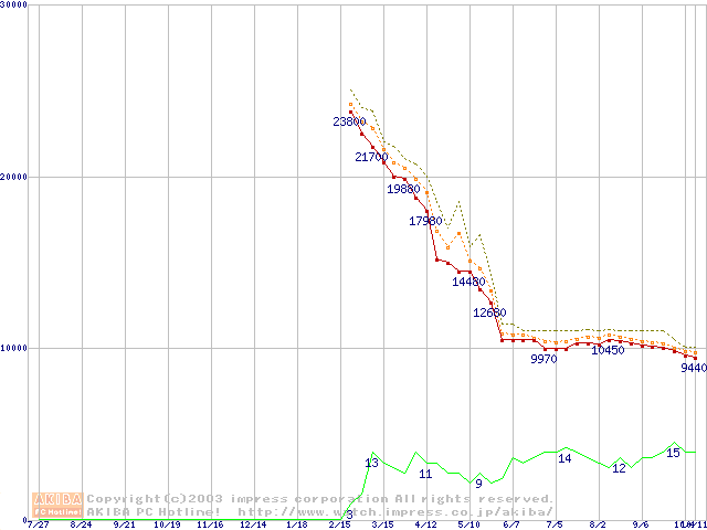 Socket A (OPGA,FSB 333MHz,L2 512KB,Barton)の最安値推移