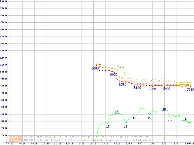 | Athlon XP 2000+ (1.67GHz) リテールパッケージ(Thoroughbred)の価格推移 |