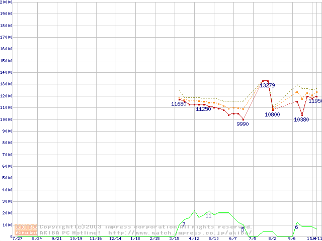 MHTシリーズ (9.5mm,4200rpm,UltraATA/100,2MB,FDB,40GB/Platter,FDB)の最安値推移
