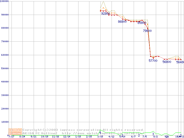 Socket 603 (micro-PGA,FSB 400MHz,L2 512KB,Prestonia)の最安値推移