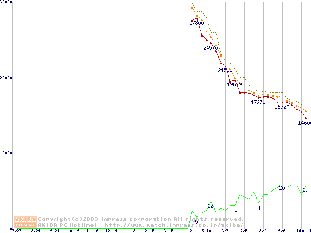 Barracuda 7200.7 (7200rpm,SerialATA,8MB,80GB/Platter,FDB)の最安値推移