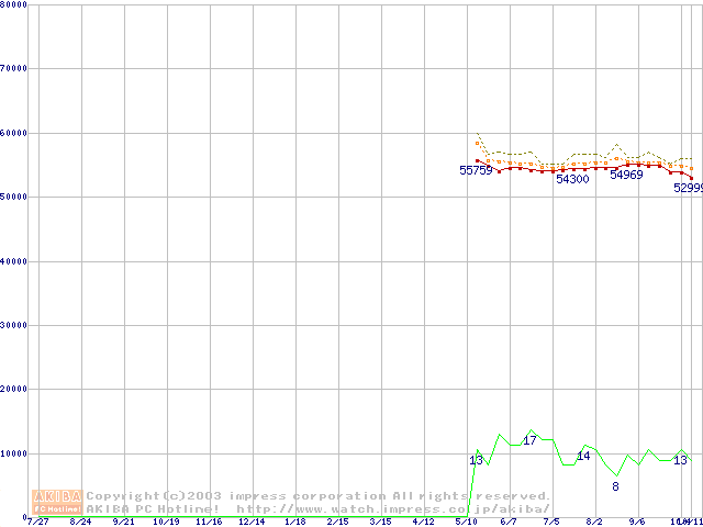 Socket A (OPGA,FSB 400MHz,L2 512KB,Barton)の最安値推移
