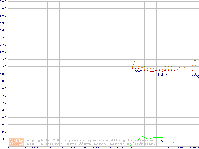 MKシリーズ (9.5mm,4200rpm,2MB,FDB,30GB/Platter)の最安値推移