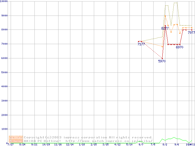 PC2700(DDR333) DDR SDRAM DIMM ECC対応の最安値推移