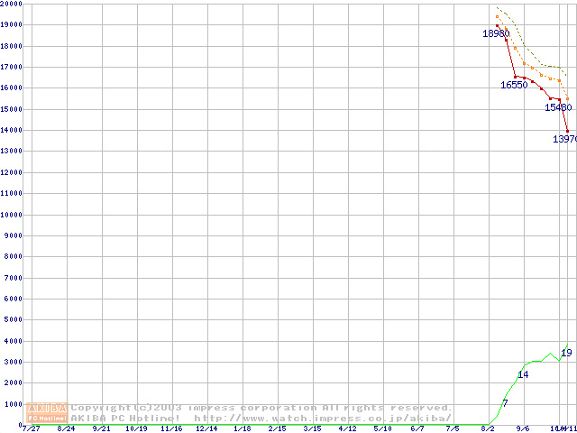 Deskstar 7K250 (7200rpm,UltraATA/100,FDB)の最安値推移