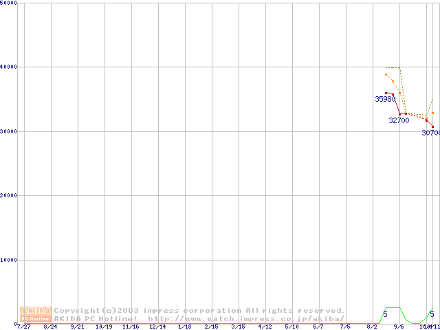 Travelstar 5K80 (9.5mm,5400rpm,UltraATA/100,8MB,FDB,40GB/Platter)の最安値推移