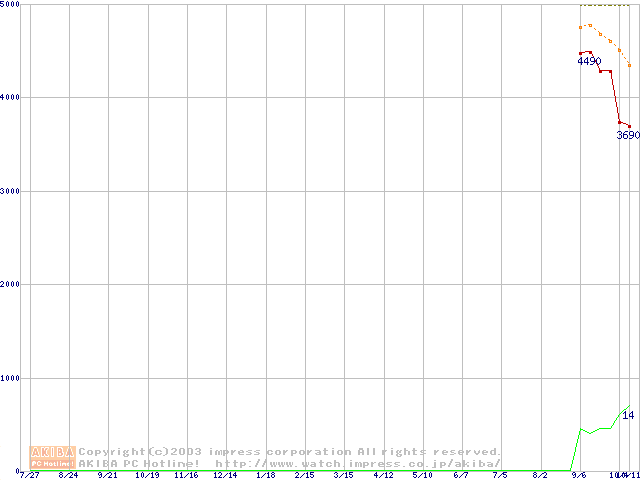 Socket A (OPGA,FSB 266MHz,L2 64KB,Applebred)の最安値推移