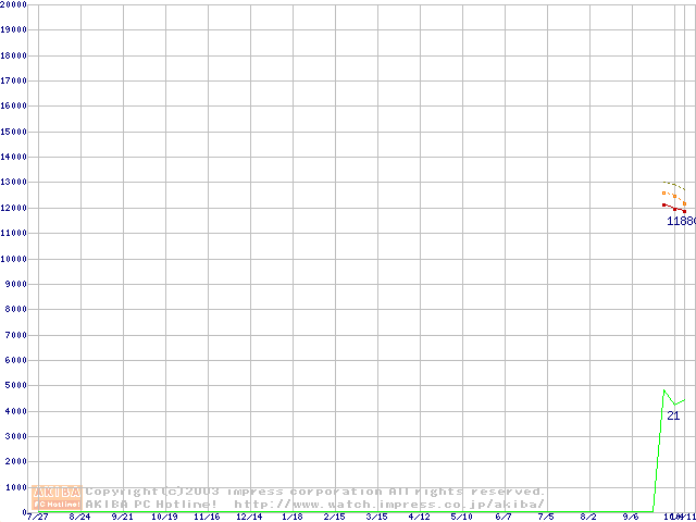 Socket 478 (micro-PGA,FSB 400MHz,L2 128KB,Northwood)の最安値推移