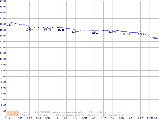 | [↓次グラフ]: | Travelstar DK23FB (9.5mm,5400rpm,UltraATA/100,8MB)の最安値推移 |