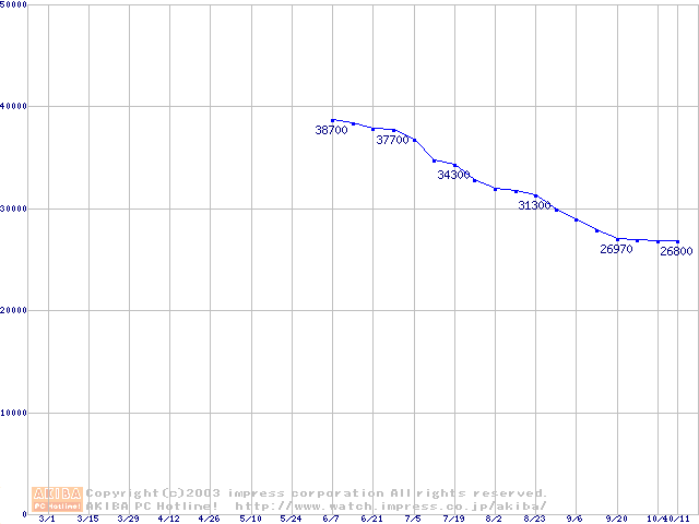 | [↑前グラフ]: | Travelstar DK23EA (9.5mm,4200rpm,UltraATA/100,512KB)の最安値推移 |