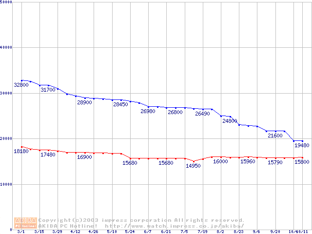 | [↑前グラフ]: | MKシリーズ (9.5mm,7200rpm,16MB,FDB)の最安値推移 |