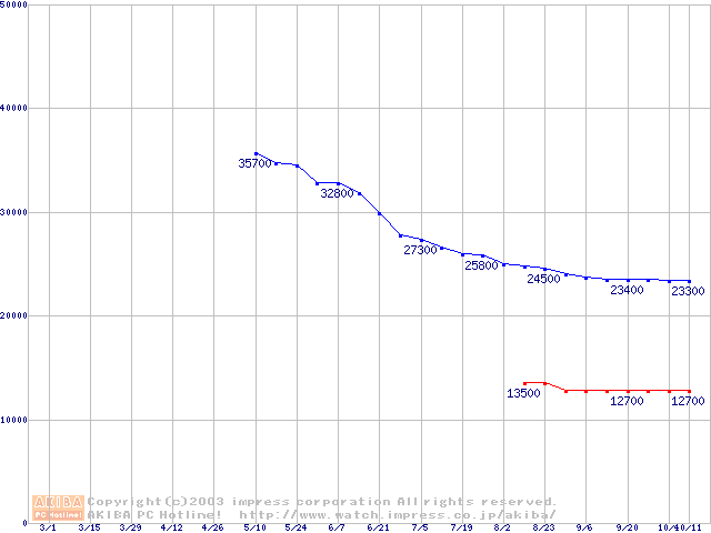 | [↑前グラフ]: | MKシリーズ (9.5mm,5400rpm,16MB,FDB)の最安値推移 |