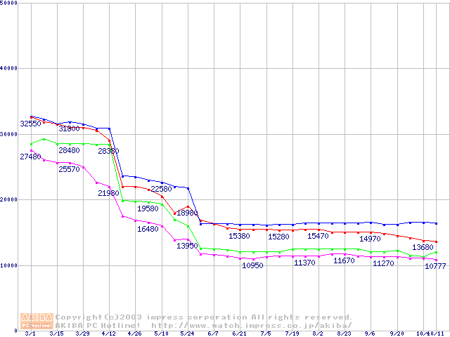 | [↓次グラフ]: | Socket A (OPGA,FSB 266MHz,L2 256KB,Thoroughbred)の最安値推移 |