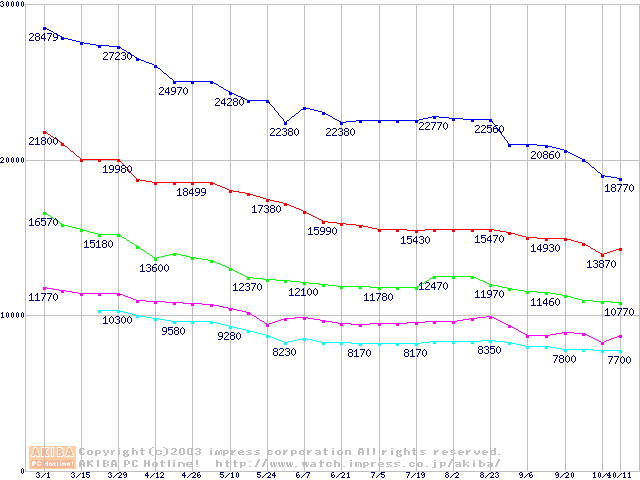 | [↑前グラフ]: | MaXLine Plus II (7200rpm,8MB,UltraATA/133,FDB)の最安値推移 |