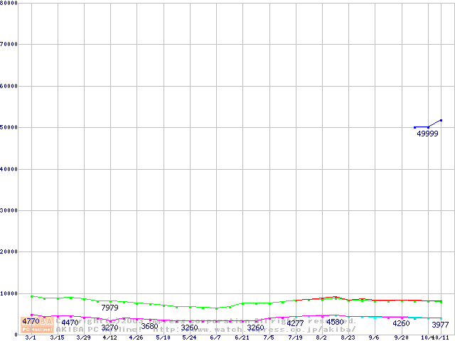 PC3200(DDR400) DDR SDRAM DIMMの最安値推移