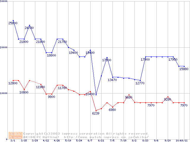 | [↓次グラフ]: | PC3700(DDR466) DDR SDRAM DIMMの最安値推移 |