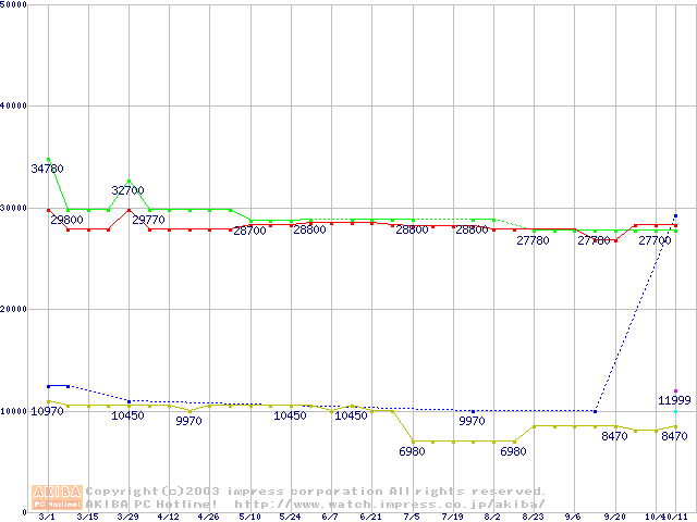 | [↑前グラフ]: | PC1066 DRDRAM RIMM ECC対応の最安値推移 |