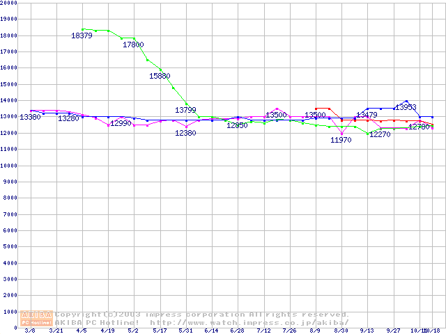 | [↑前グラフ]: | 2.5インチHDD 30GB~40GB未満(9.5mm厚)の最安値推移 |