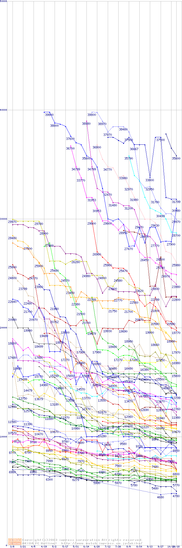 ※製品名をクリックすると個別のグラフを表示します ※点線部は販売店が確認できなかった、または調査データがないことを示します |