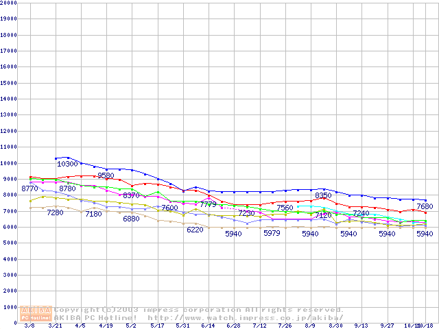 HDD 30GB~80GB未満(7200rpmクラス)の最安値推移