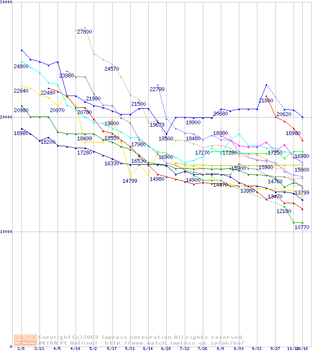 HDD 100~160GB未満(7200rpmクラス)の最安値推移