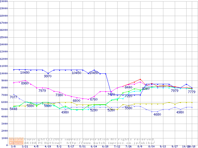 メモリ主要製品(最安値5千円~1万円未満)の最安値推移