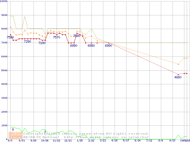 WD Protege (5400rpm,UltraATA/100)の最安値推移