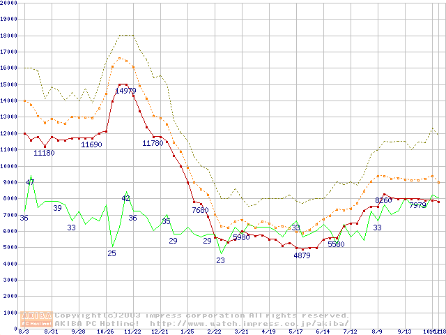 PC2100 DDR SDRAM 512MB(CL2.5)の価格推移