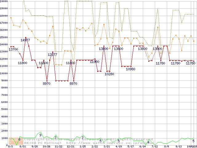 PC133 SDRAM DIMM CasLatency=3 ECC対応 Registeredタイプの最安値推移