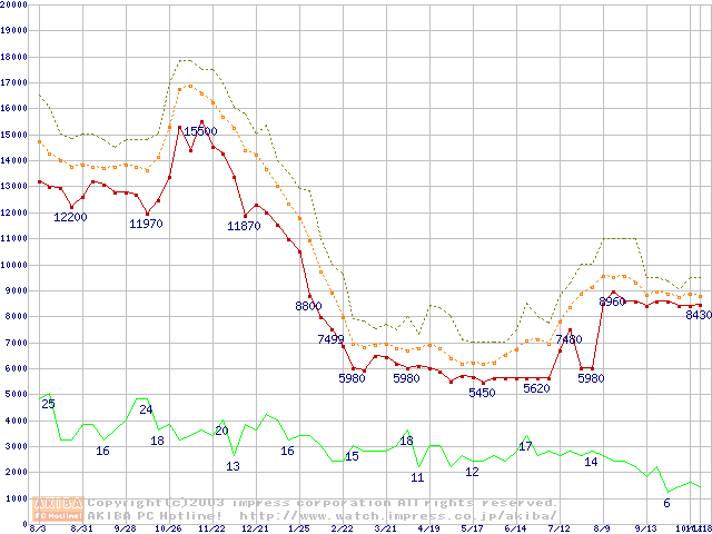 PC2100(DDR266) DDR SDRAM DIMM(CL 2.0)の最安値推移