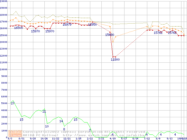Pentium 4 1.60A GHz リテールパッケージの価格推移