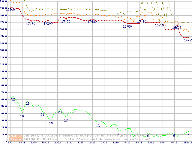 Pentium 4 1.80A GHz リテールパッケージの価格推移