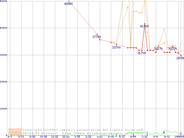 PC2700(DDR333) DDR SDRAM DIMM ECC対応 Registeredタイプの最安値推移