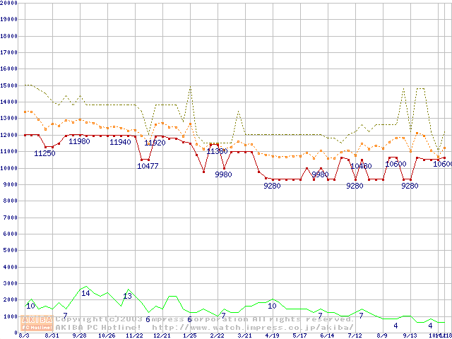 PC800-40 DRDRAM RIMM ECC対応の最安値推移