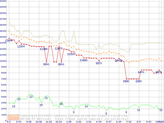 PC1066 DRDRAM RIMM4200(32bit)の最安値推移