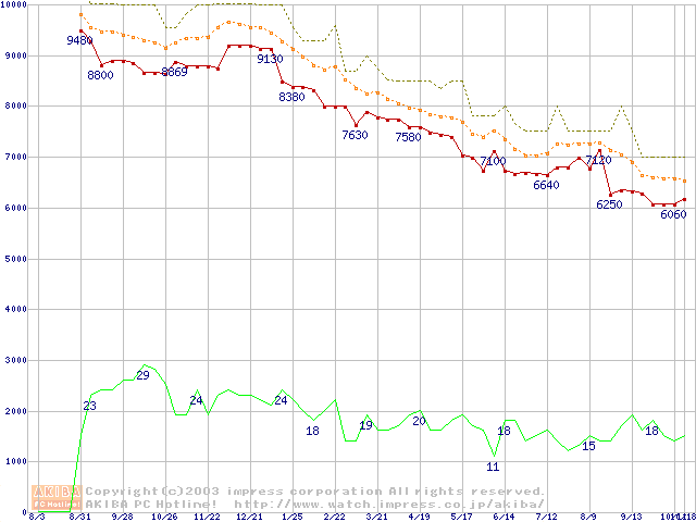DiamondMax Plus 8 (7200rpm,2MB,UltraATA/133,FDB)の最安値推移