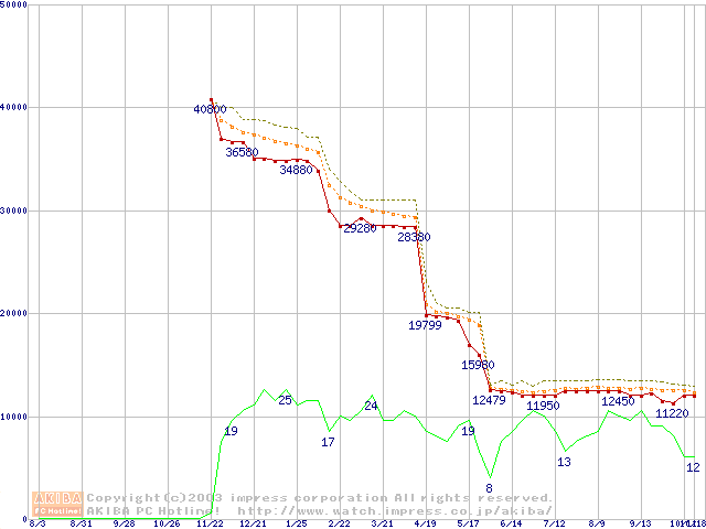 Socket A (OPGA,FSB 333MHz,L2 256KB,Thoroughbred)の最安値推移
