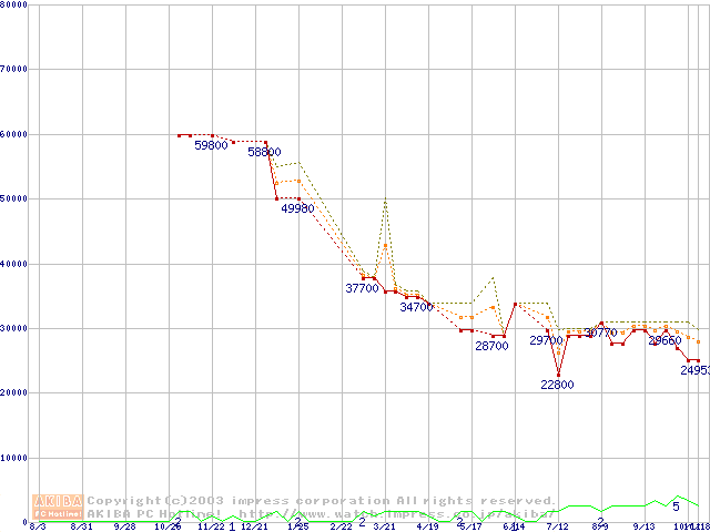 PC2700(DDR333) DDR SDRAM DIMMの最安値推移