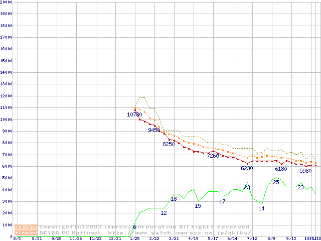 Barracuda 7200.7 (7200rpm,UltraATA/100,2MB,80GB/Platter,FDB)の最安値推移