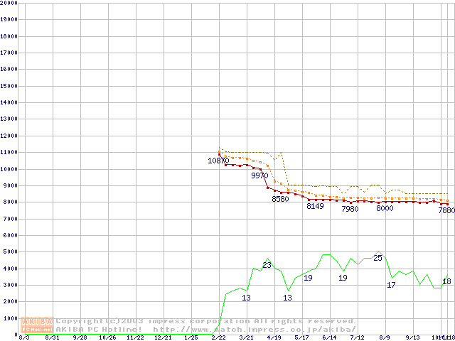 Athlon XP 2000+ (1.67GHz) リテールパッケージ(Thoroughbred)の価格推移